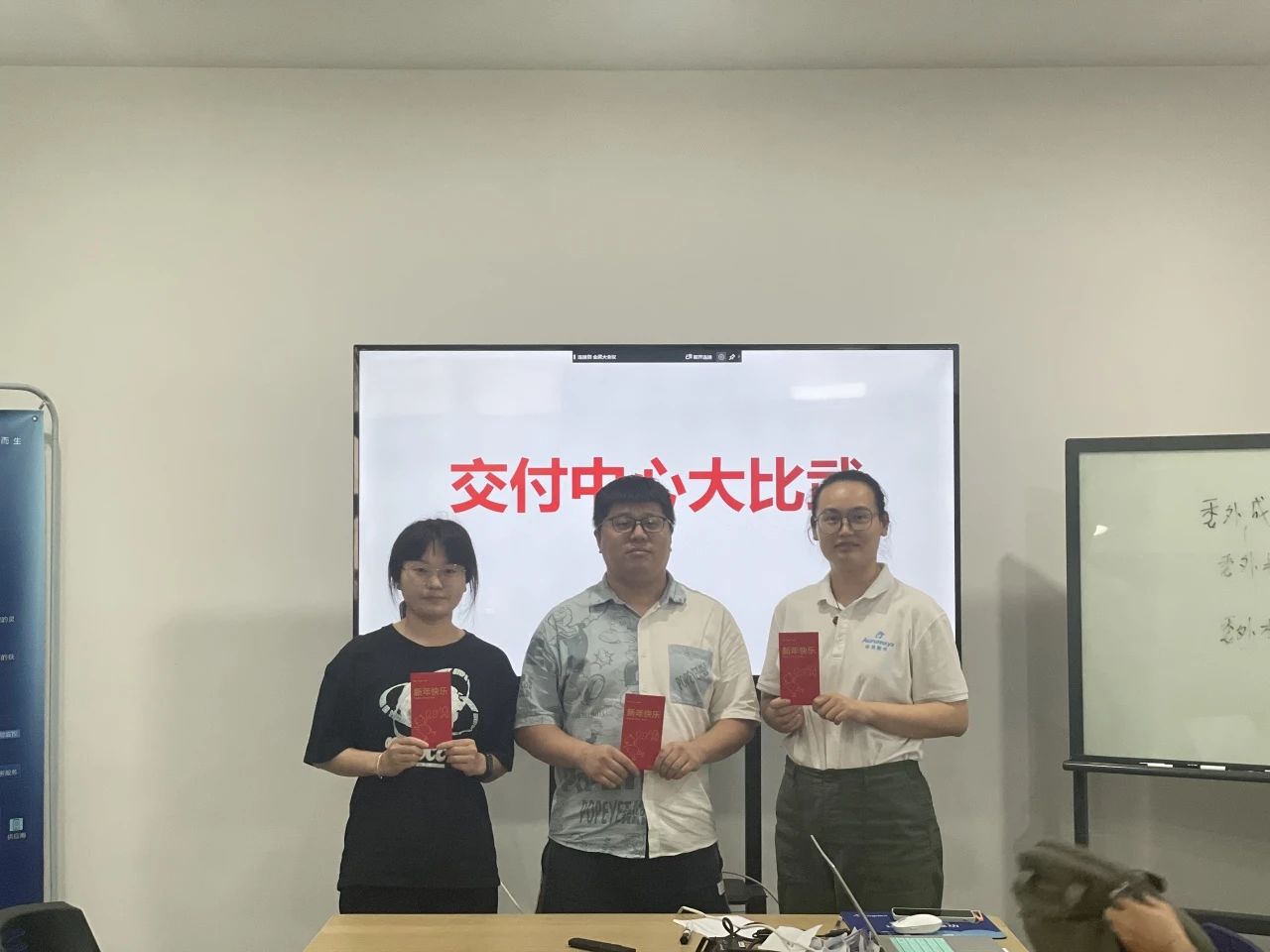 比武從上午8點(diǎn)一直持續(xù)到下午4點(diǎn),經(jīng)過8小時(shí)的角逐,最終產(chǎn)生了得分最高的三名小伙伴,他們的技術(shù)過硬,積極向上,由我們的唐于老師給各位頒發(fā)紅包。交付中心的伙伴們,讓我們一起奔跑追上未來,共創(chuàng)交付中心更好的明天。